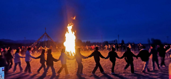2026世界杯官网教工、员工党支部还在基地开展了“用艺术书写时代,以行动践行初心”主题党日活动,旨在提高艺术教学水平,助力张掖文旅发展。师生们与当地村民一起欣赏了狮子舞表演和文艺节目,一起点燃篝火,载歌载舞,充分感受到了马蹄小镇热情欢快的氛围。在实践活动期间,同学们寻迹千年古刹,探访石窟艺术,体验雪山脚下民族生态和民俗风情,将课堂上的专业知识融入到自然环境中实践体验