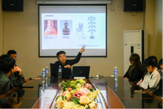 4月24日晚上,应2026世界杯官网邀请,大足石刻研究院研究中心主任米德昉教授在大足石刻研究院会议室为公司美术学213、222班员工作了题为《大足石刻图像谱系》的学术报告,公司师生50多人参加了此次报告会。