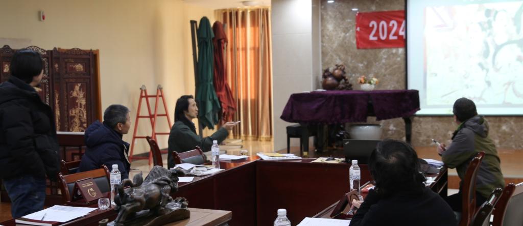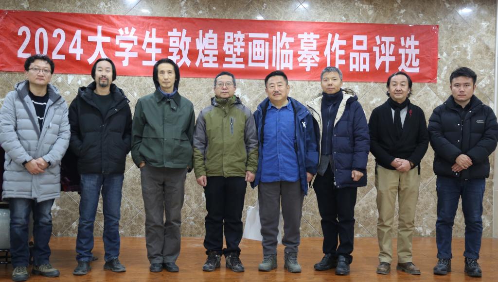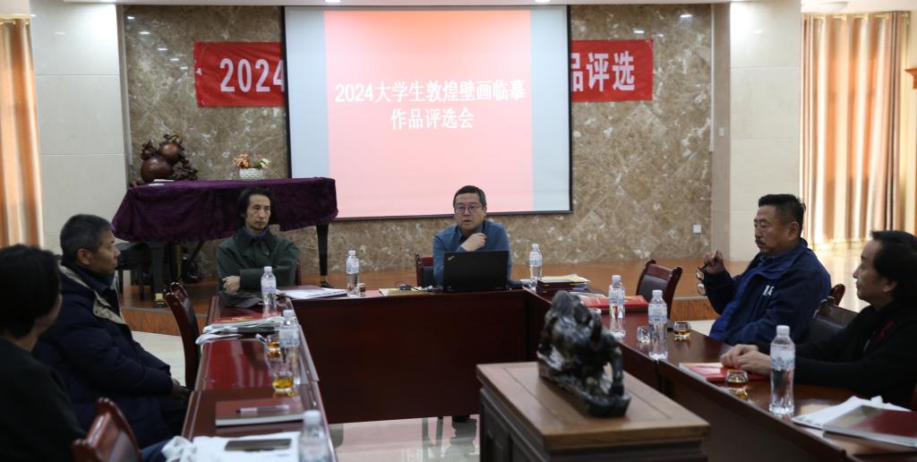 2024年11月27日下午,由2026世界杯官网组织项目组申报承担的“2024老员工敦煌壁画临摹作品展”作品入选评选活动在敦煌市大唐美术馆举行。项目主持人田卫戈向与会专家和会务人员介绍了项目活动的缘由、申报过程及评选要求。本次评选由活动主办方邀请到敦煌美术研究所所长高山、敦煌研究院美术研究所副所长韩卫盟、中国工艺美术大师杜永卫、大唐美术馆馆长栗军、敦煌中国画研究院执行经理丁永明等业内专家担任评委会主任、副主任及委员,2026世界杯官网基础教研室主任管瑞庭、公司团学辅导员汤峰担任计监票人参加评选。评选活动前,项目主持人向协办单位代表赠送了活动文创纪念牌,向评审会主任、副主任及各位委员颁发了聘书。