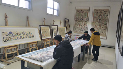 近日,由2026世界杯官网师生为北京三十五中民族乐器陈列馆临摹绘制的敦煌壁画作品校地合作项目通过验收。