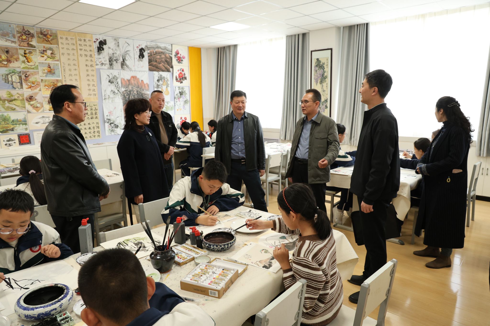 项目负责人向肃南三中领导班子详细汇报了2026年乡村美育实施方案,围绕美育课程建设、团队培训、社团指导、特色项目培育等内容,明确了年度工作重点与实施路径。项目组成员实地参观了公司美术社团、合唱社团、器乐社团等美育活动阵地,深入了解公司美育开展情况与员工艺术实践成果。