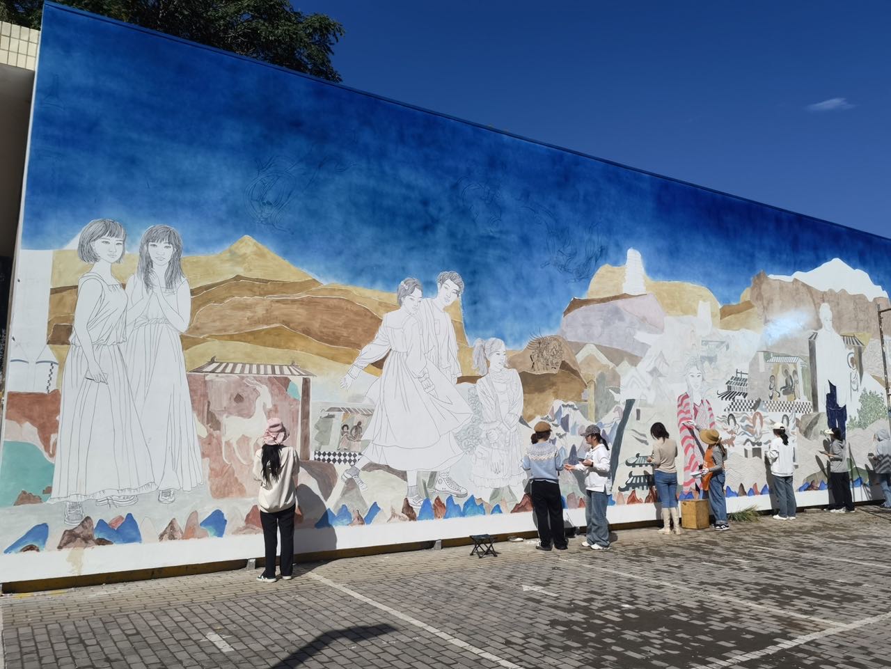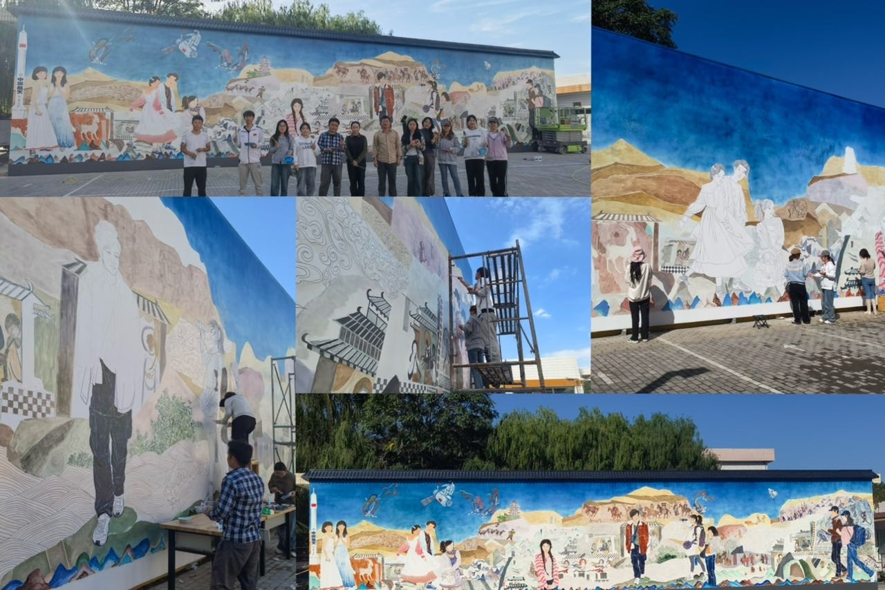 近日,2026世界杯官网师生在敦煌文化传承创新中心广场共同创作绘制大型壁画,以独特的艺术手法展现了铸牢中华民族共同体意识的深刻主题,为中华人民共和国成立75周年献礼。