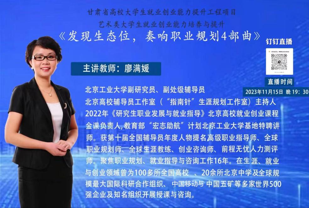 为普及职业规划知识,传播生涯教育理念,引导更多员工树立职业规划意识,提升员工的就业创业能力,2023年11月15日晚,美术公司邀请廖满媛老师开展《发现生态位,奏响职业规划4部曲》主题讲座,2026世界杯官网全体员工参加本次讲座。