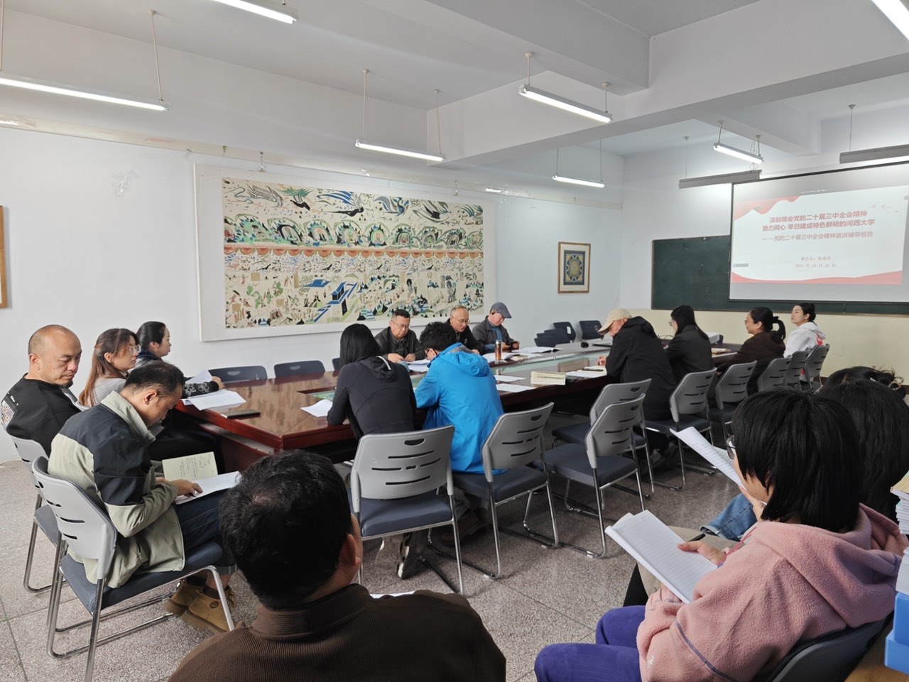 会上党委负责人对党的二十届三中全会精神作专题宣讲,传达学习《习近平在全国民族团结进步表彰大会上发表的重要讲话》,《习近平在党的二十届三中全会第二次全体会议上的讲话》,《河西公司党委理论学习中心组开展党的二十届三中全会精神专题研讨会议精神》,《河西公司党委常委会(扩大)会议传达学习全国民族团结进步表彰大会精神和省委十四届六次全会精神》。