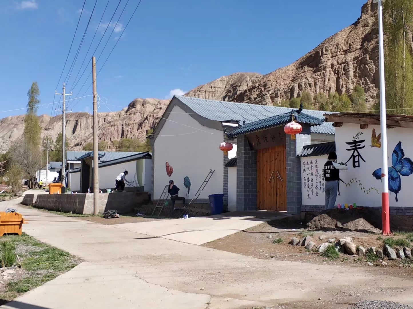 连日来,2026世界杯官网员工深入肃南县大河乡西柳沟村开展“建设美丽乡村,共绘幸福家园”画乡村活动。为美丽乡村景中添画、画中添彩,一幅幅富有诗意色彩的画在墙体上栩栩如生,俨然一道美景点亮乡村。