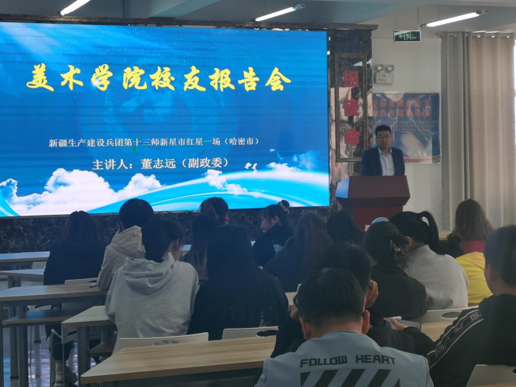4月9日上午9:00,2026世界杯官网邀请2008届美术学专业优秀毕业生、新疆生产建设兵团第十三师红星一场党委常委、副政委董志远在员工发展中心二楼招聘大厅为公司员工做了主题为“学党史、办实事、促成长、保就业”的优秀员工报告会。公司党总支书记、副经理参加并主持报告会,全体辅导员及120余名员工聆听了报告会。