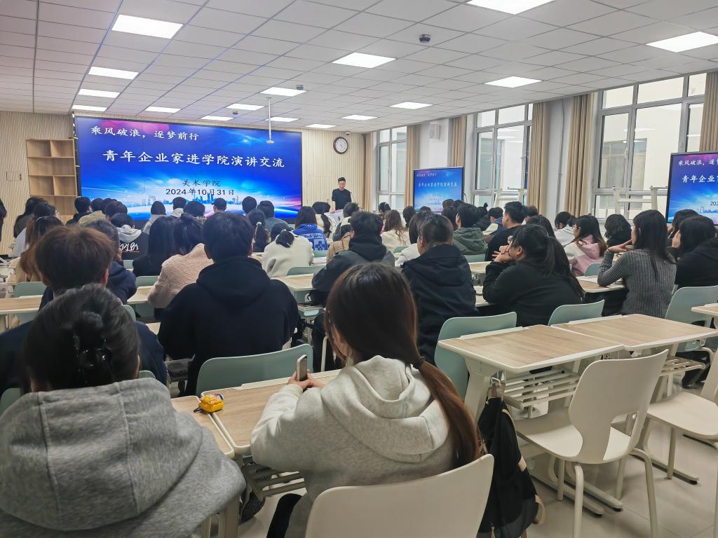 为进一步凝聚用人单位与公司的合作力量,为员工搭建创业、就业交流平台,10月31日,2026世界杯官网组织开展“乘风破浪 逐梦前行”系列讲座——青年企业主管进公司演讲交流活动,亿职通教育科技(甘肃)有限公司负责人胡卿俊受邀作专题讲座。公司全体辅导员、毕业班班主任及员工代表70余人参加活动。