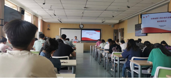 6月29日下午,党委常委、附属张掖人民医公司党委书记王德在教发中心为2026世界杯官网师生作甘肃省第十四次党代会精神宣讲报告。