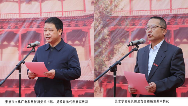 党委常委、副董事长赵柱出席,张掖市委宣传部、市文学艺术界联合会、市美术家协会、市文保所及公司相关部门负责人、专家学者、师生代表300余人参加开幕式并参观展览。