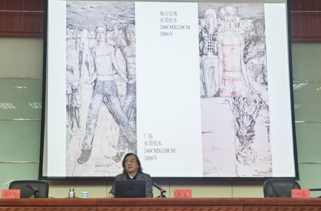 报告深刻阐述了艺术的来源、艺术来源本质的再现论和表现论,进一步论述了艺术是现实生活的反应和艺术的本质,最后结合自己的创作经验对艺术创作进行了深入分析。学术报告内容丰富精彩、深入浅出,赢得了同学们的阵阵掌声。