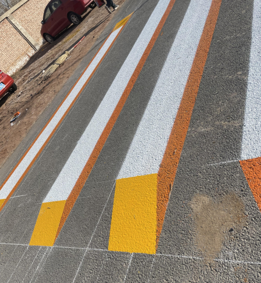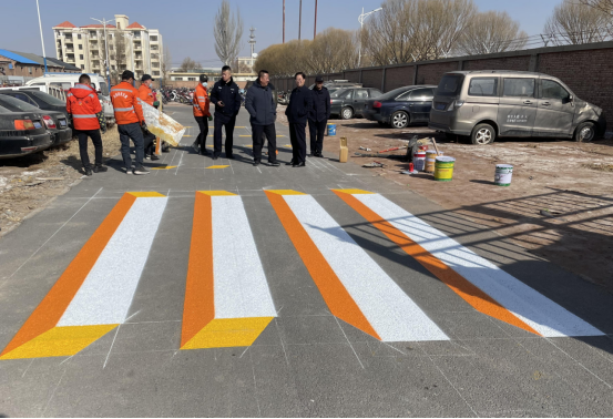 “彩虹斑马线”,使用鲜艳颜色的彩色进行施工,对视觉起到了关键作用,用来形成与普通沥青路面的对比,起到提示警告的特殊作用,使驾驶人员减速慢行,有效地避免交通事故发生。